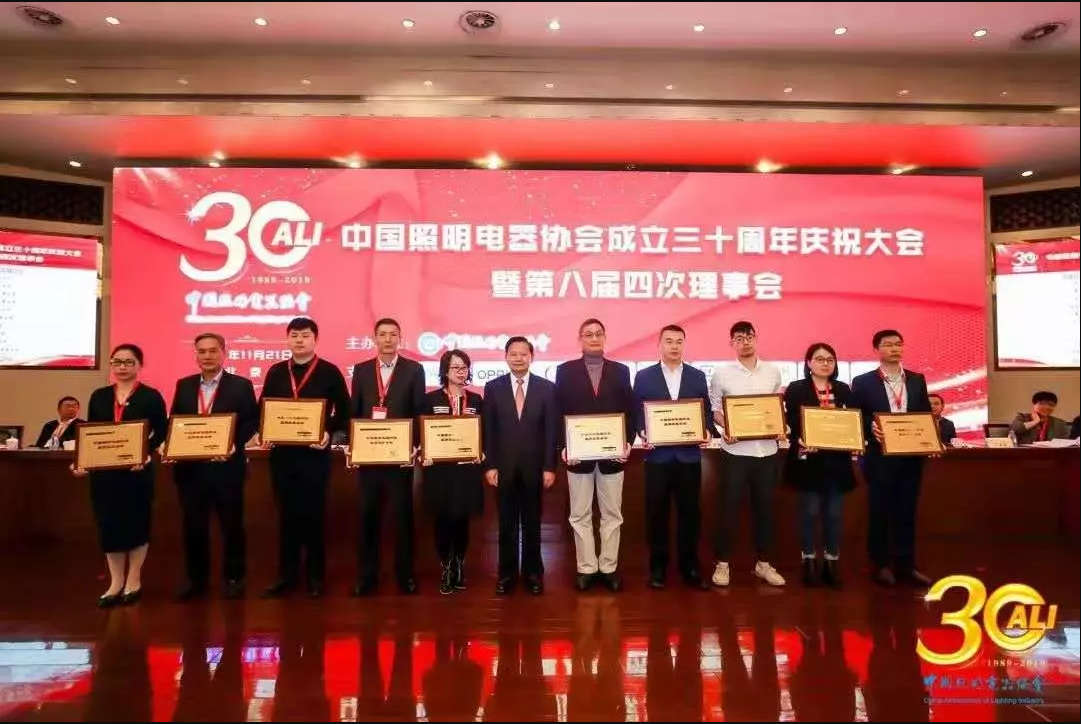 2019年11月21日,,中国照明电器协会成立三十周年之际,,,对三十年来行业内涌现的优秀集体和先进个人进行表彰,,,共评选行业优秀集体181家,,行业先进个人92名。。。。雀魂物联科技股份有限公司荣获大会集体奖项最高荣誉“中国照明电器行业品牌效益企业”,,,,董事长李江淮先生荣获大会个人奖项最高荣誉“中国照明电器行业杰出贡献奖”。。